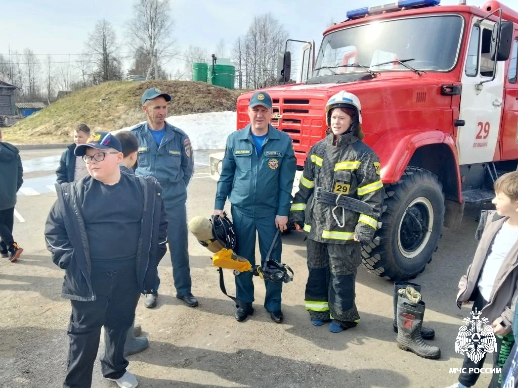 После проведенной тренировки, школьников познакомили с профессией пожарного. Специалисты рассказали о структуре пожарно-спасательной части, особенностях работы современных огнеборцев, их повседневной службе.