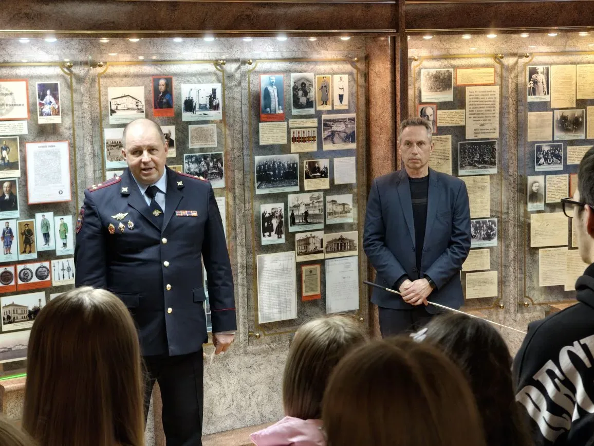 Алексей Чагин провел для гостей музея познавательную экскурсию, сделав особый акцент на примерах мужества и самоотверженности сотрудников советской милиции и российской полиции, раскрытых ими резонансных преступлениях.