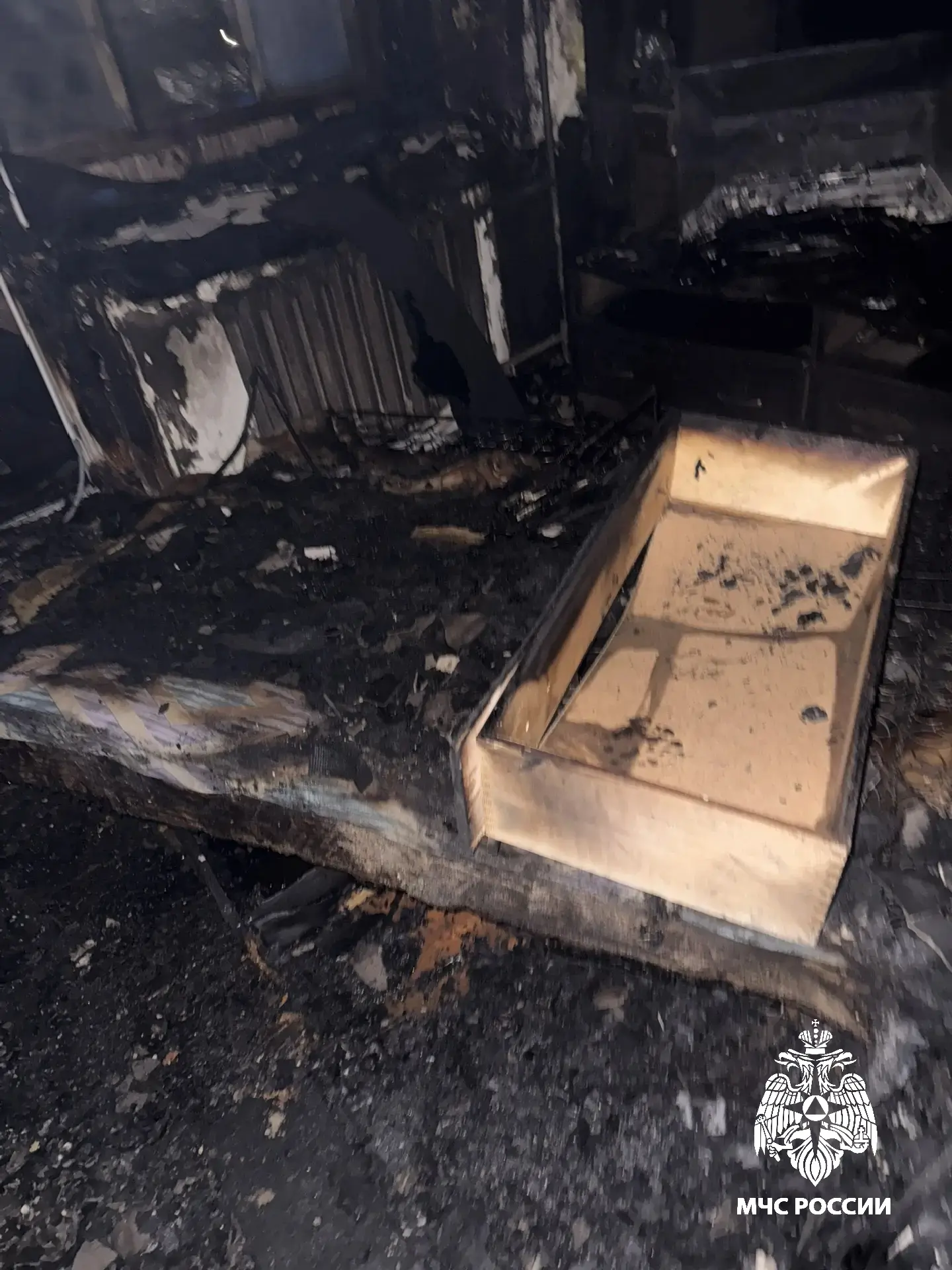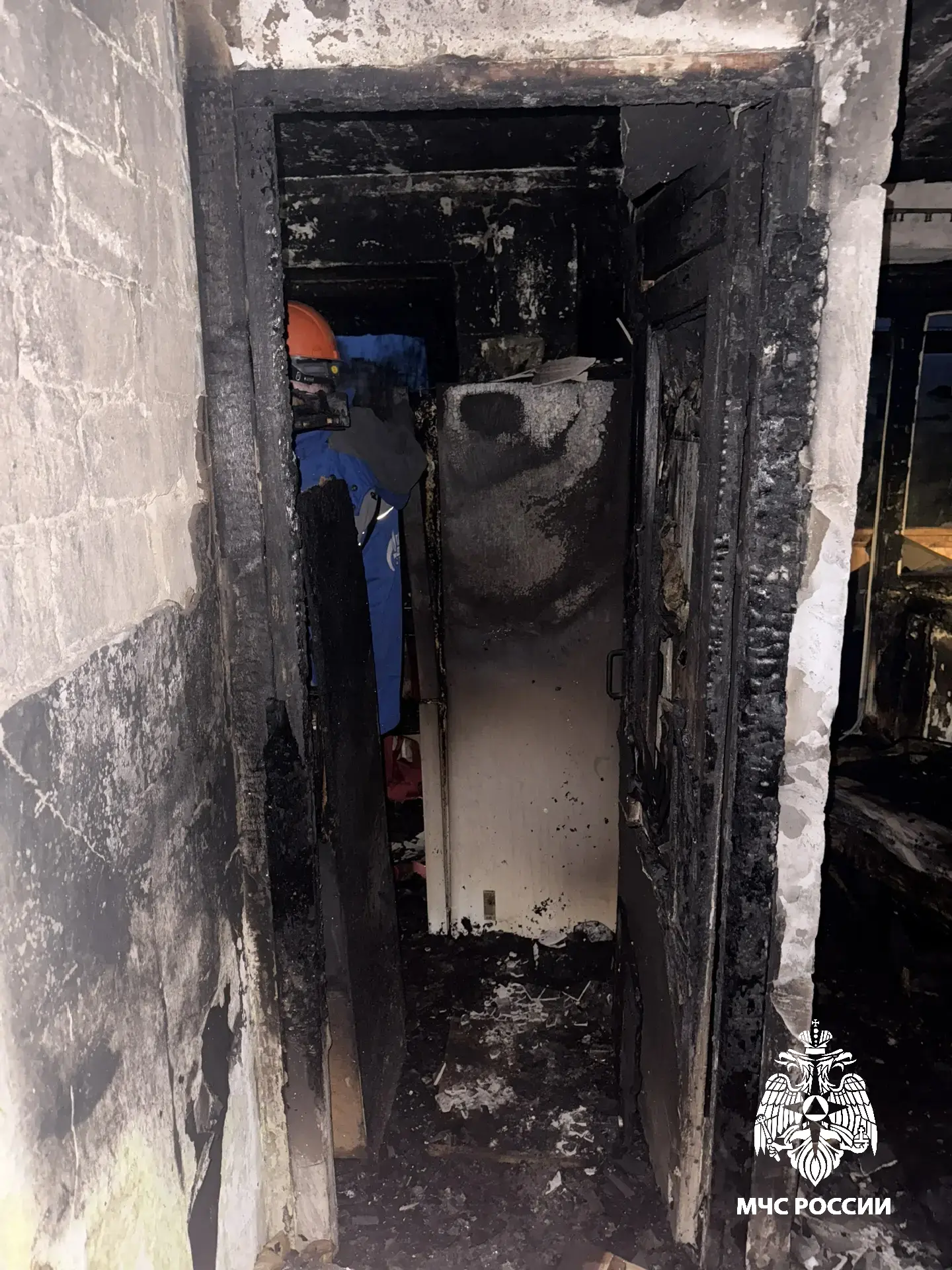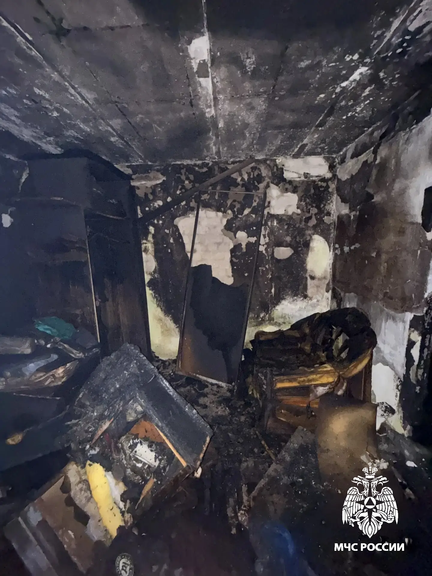 В результате происшествия выгорело внутри по всей площади квартиры, огнем повреждены пластиковые окна, закопчены двери 4 квартир на лестничной площадке 4 этажа, закопчен потолок на 4 и 5 этажах.
