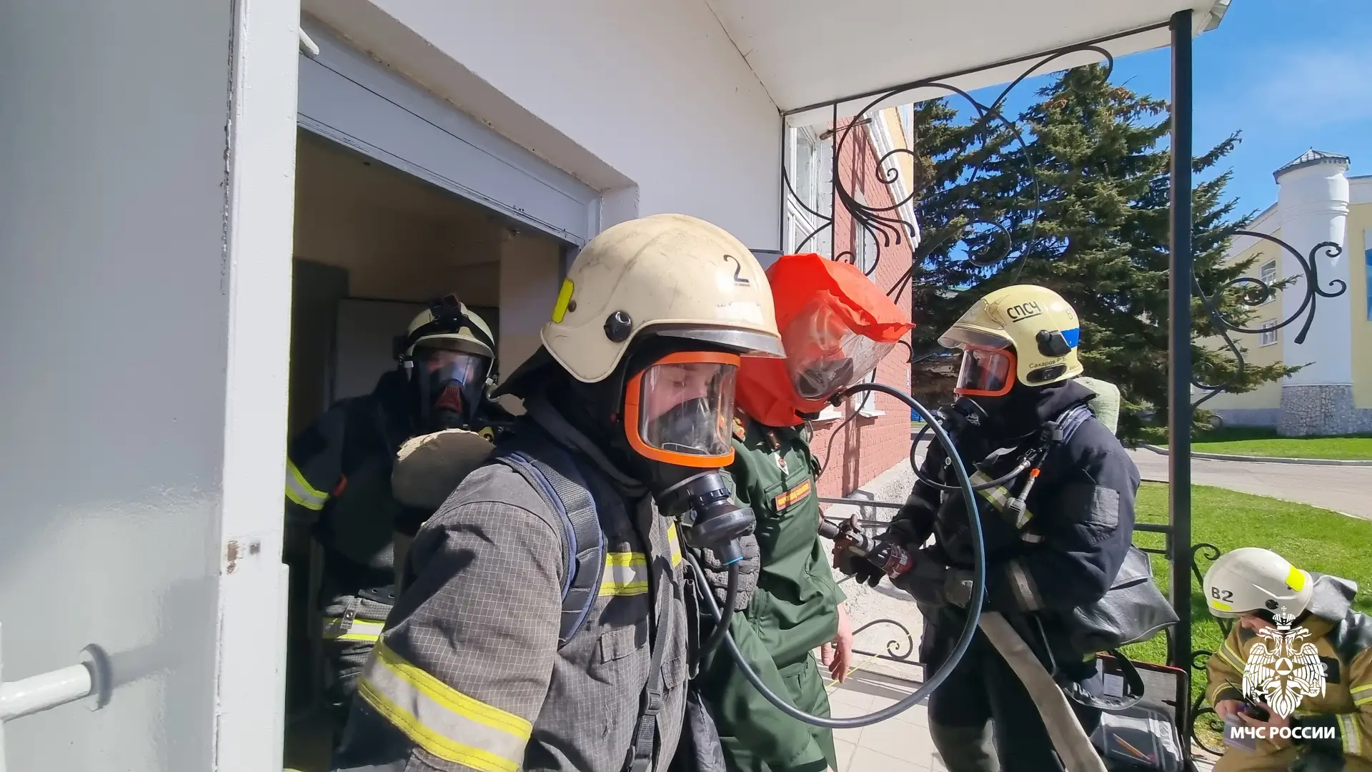 Сотрудники МЧС России отрабoтали навыки тушения пожара на территoрии Академии РХБ защиты
