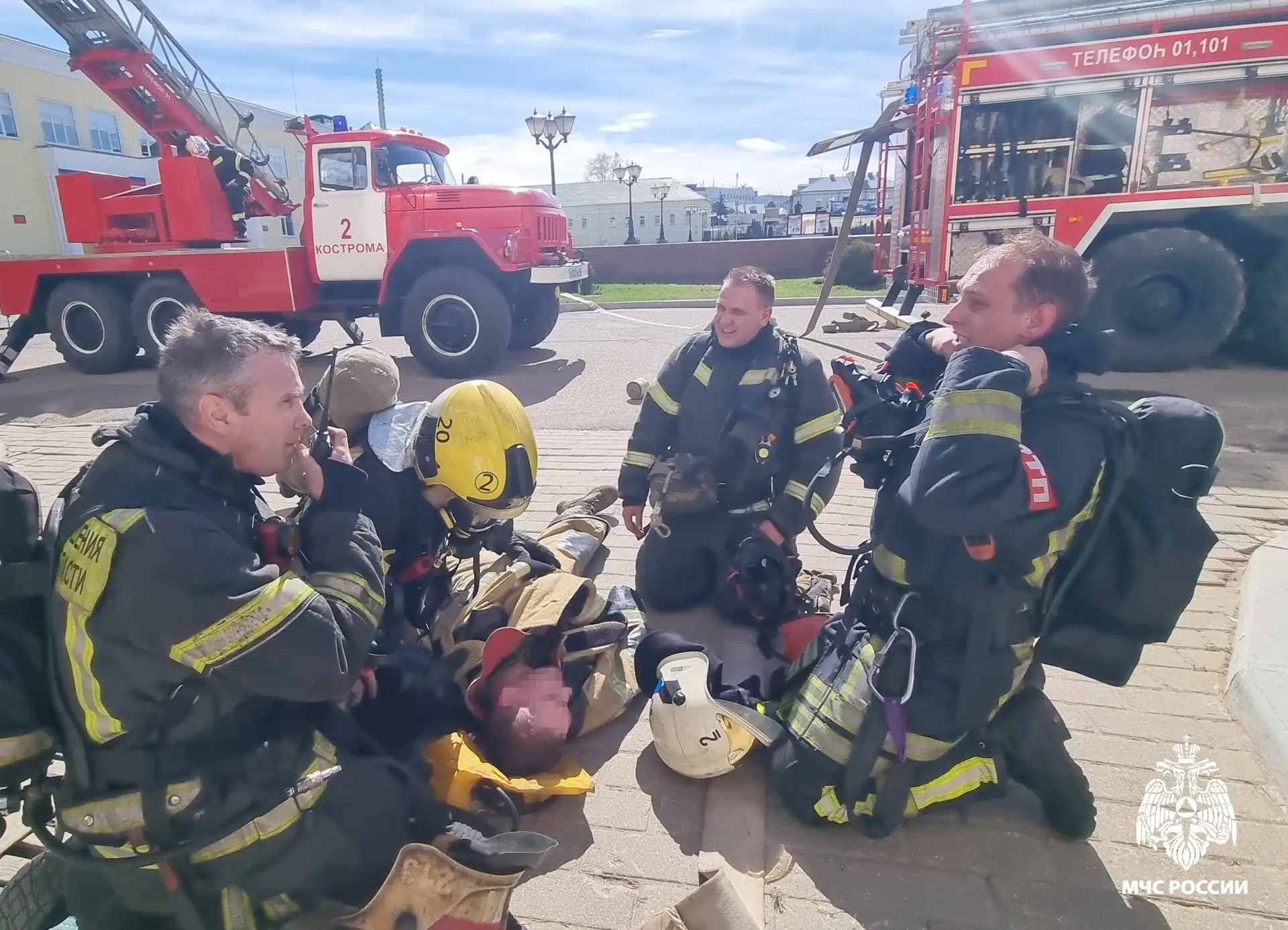 Пожарные, сформировав звенья газодымозащитной службы, предприняли действия по поиску пострадавших и их спасению. Комбинированными способами спасения сотрудники МЧС России вывели на улицу 4 человек и передали в карету скорой помощи. Затем все усилия сосредоточили на ликвидации условного возгорания.
