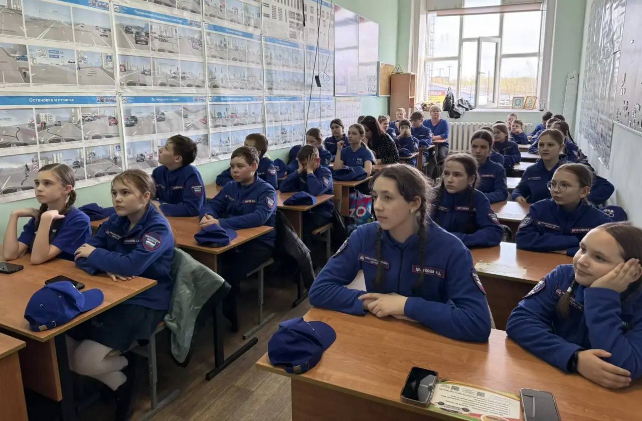 Класс теоретических занятий. Юные инспекторы повторили основные положения Правил дорожного движения, обсудили различные дорожные ситуации и разобрали базовые принципы безопасного поведения на дорогах.
