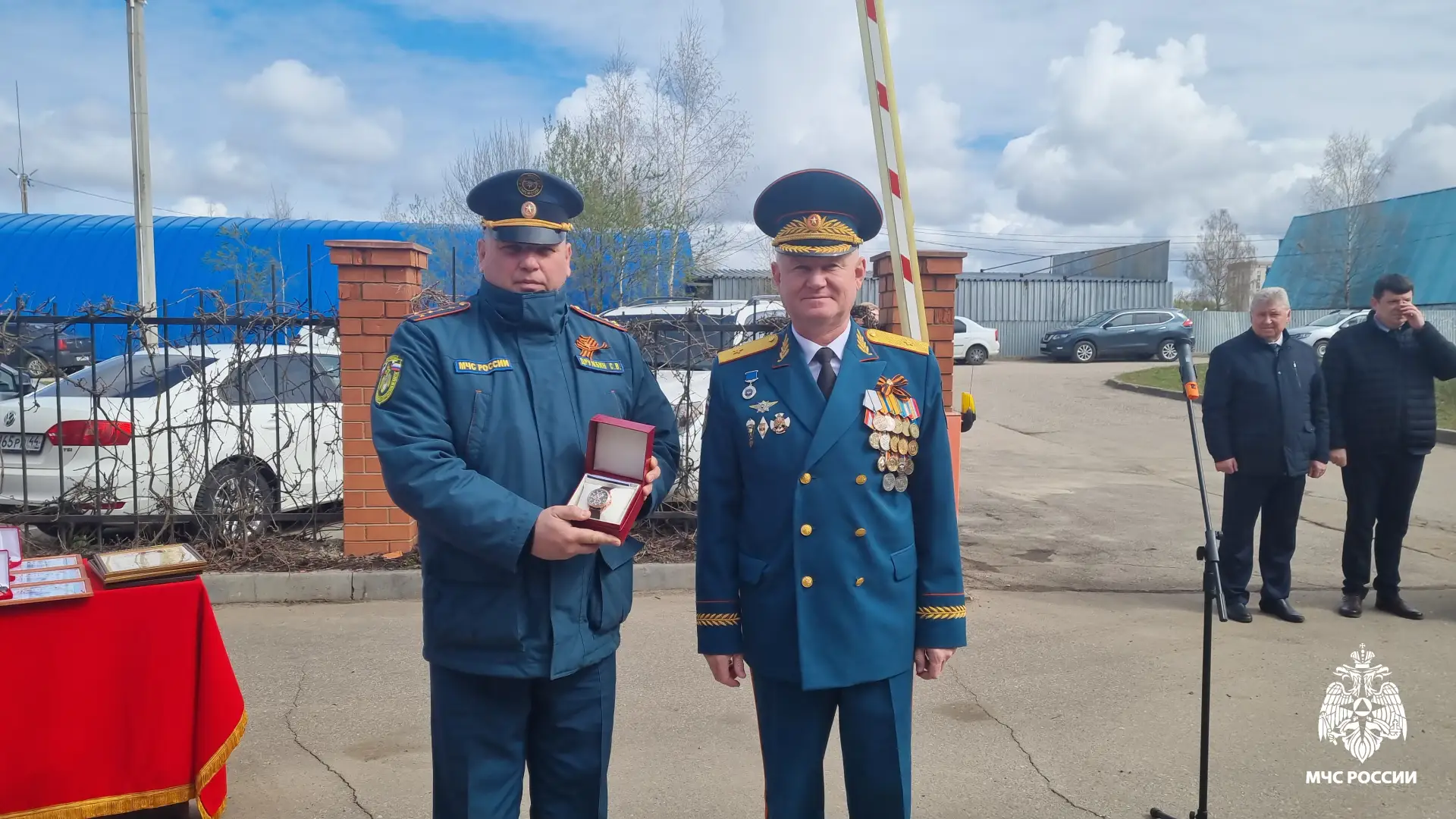 Началось мероприятие с построения личного состава Главного управления МЧС России по Костромской области, сотрудников пожарно-спасательной службы области. Начальник Главного управления генерал-майор внутренней службы Дмитрий Корнеев поздравил огнеборцев с профессиональным праздником и вручил наиболее отличившимся сотрудникам ведомственные медали, награды и нагрудные знаки.