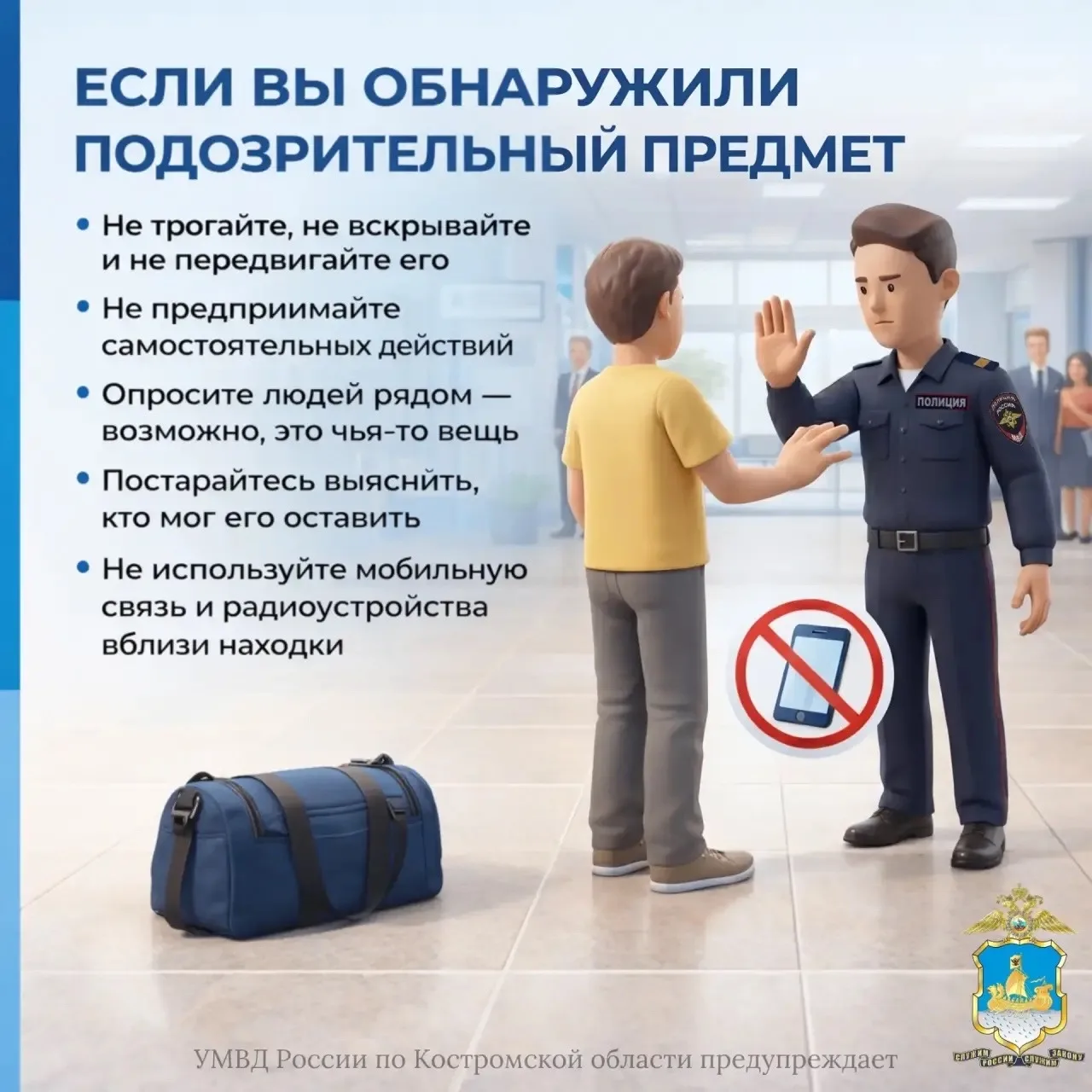 Не трогайте, не вскрывайте и не передвигайте предмет.