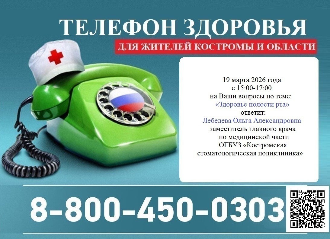 В ее рамках для жителей города и области 19 марта будет организован «Телефон Здоровья». Костромичи могут задать вопросы по теме «Здоровье полости рта» заместителю главного врача по медицинской части ОГБУЗ «Костромская стоматологическая поликлиника» Ольге Лебедевой.