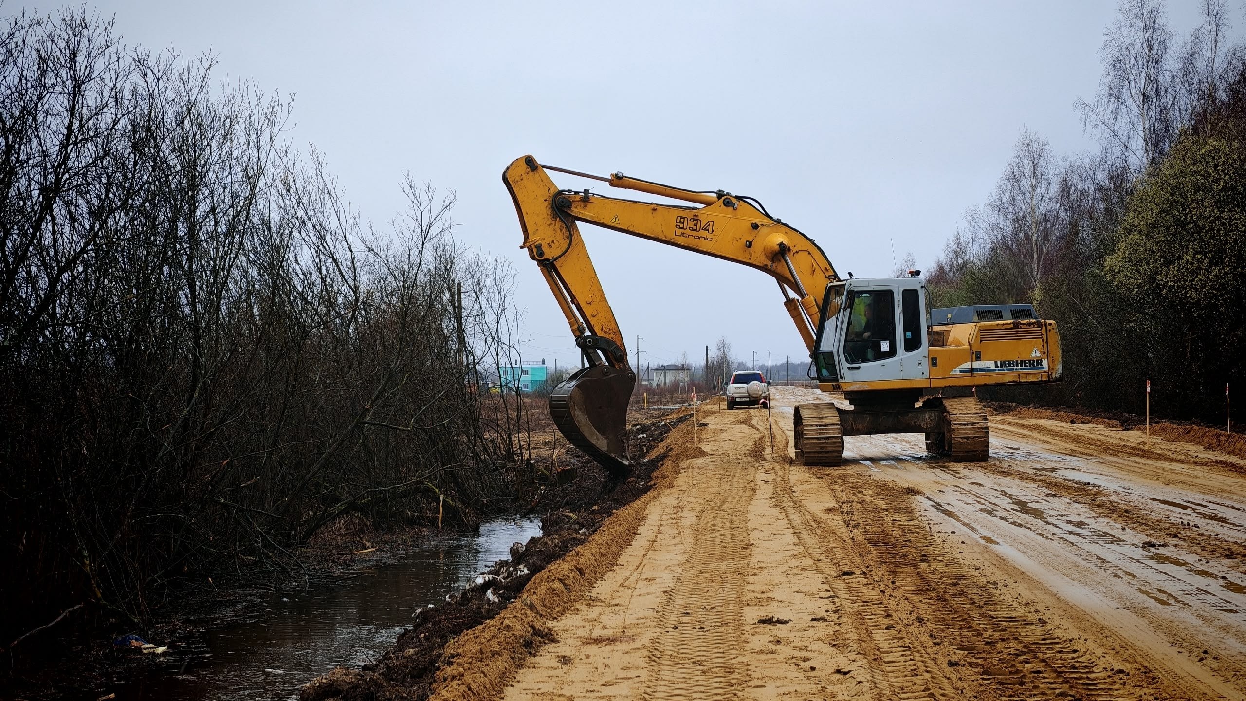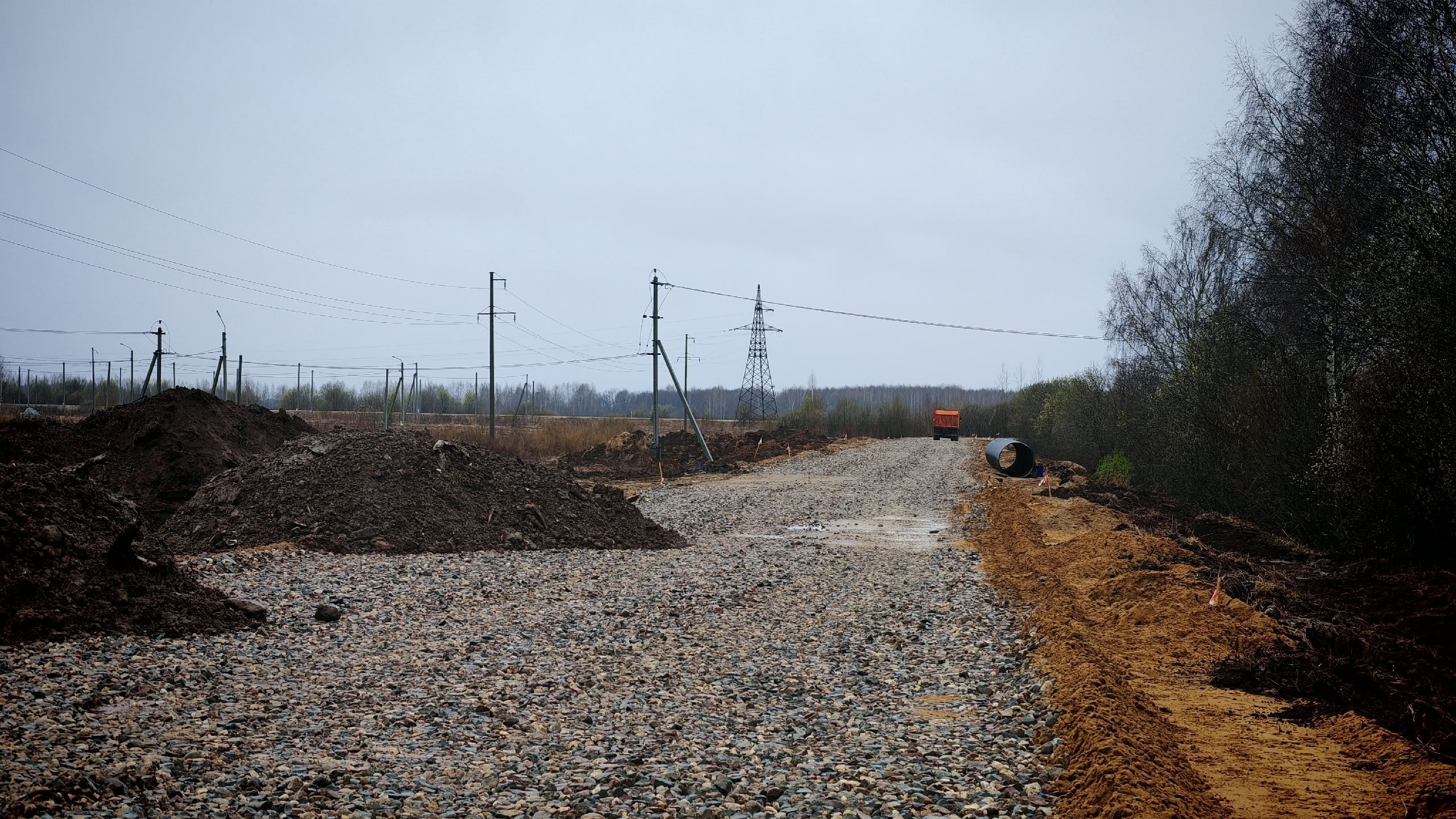 Для организации дороги проведена большая подготовительная работа – полностью выполнена расчистка полосы отвода от растительности, смонтированы три водопропускные трубы большого диаметра. Также рабочие провели расширение проезжей части, отсыпали песчаное основание. Сейчас бригады укладывают щебень.