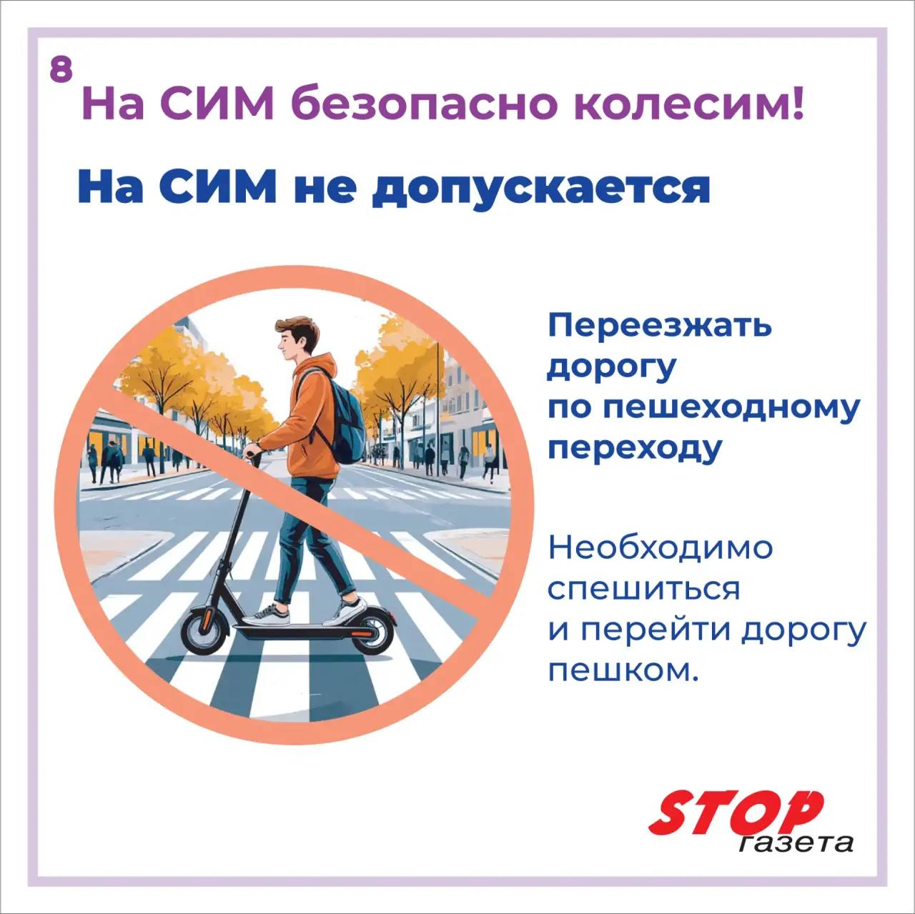 Спешивайтесь на переходе. Дорогу переходим только пешком, ведя СИМ рядом.