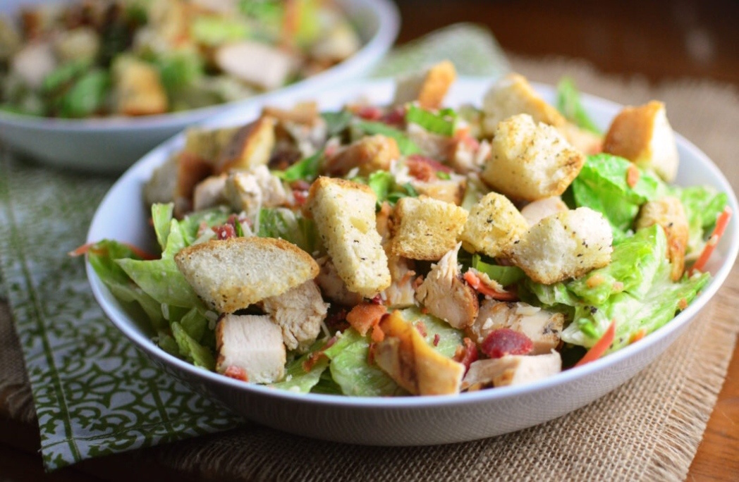 Теперь перейдем к основным ингредиентам. Твердый сыр натрите на крупной терке. Куриное филе, огурцы, сладкий перец и лук нарежьте кубиками среднего размера. Все нарезанные ингредиенты аккуратно объедините в одной миске, добавьте майонез, приправьте солью и перцем по вкусу. Выложите получившуюся смесь на листья салата, а сверху посыпьте ароматными сухариками. Ваш салат готов и идеально подойдет как для повседневного обеда, так и для праздничного стола.