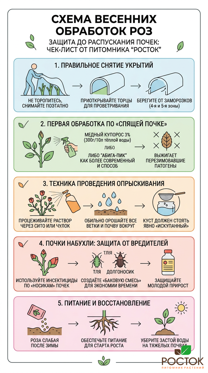 Весна – это время, когда розы пробуждаются после зимнего сна, но это также и период, требующий особого внимания. После холодов наши растения сталкиваются с рядом угроз. Инфекции и вредители не дремлют, и высокие возможности для них открываются, как только появляются первые зелёные побеги.