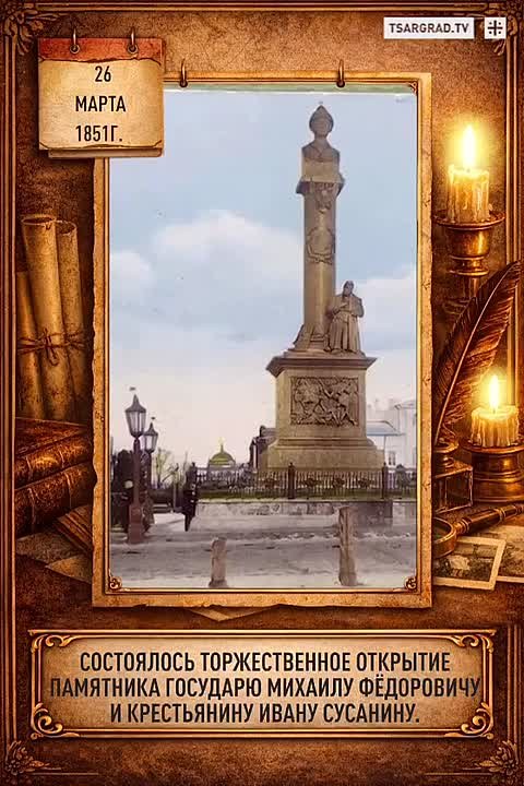 В этом выпуске рассказываем о том, как в 1851 году в Костроме открыли памятник Ивану Сусанину.