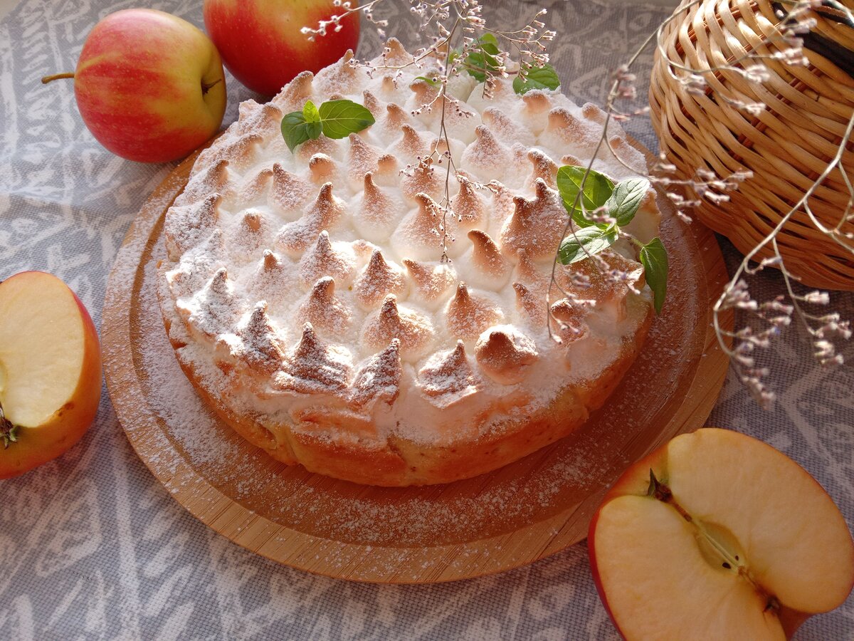 В нынешнем варианте, данный пирог стал гораздо ярче благодаря добавлению меренги, что делает его даже более праздничным. Эта версия пирога придаст вашему столу особое очарование.