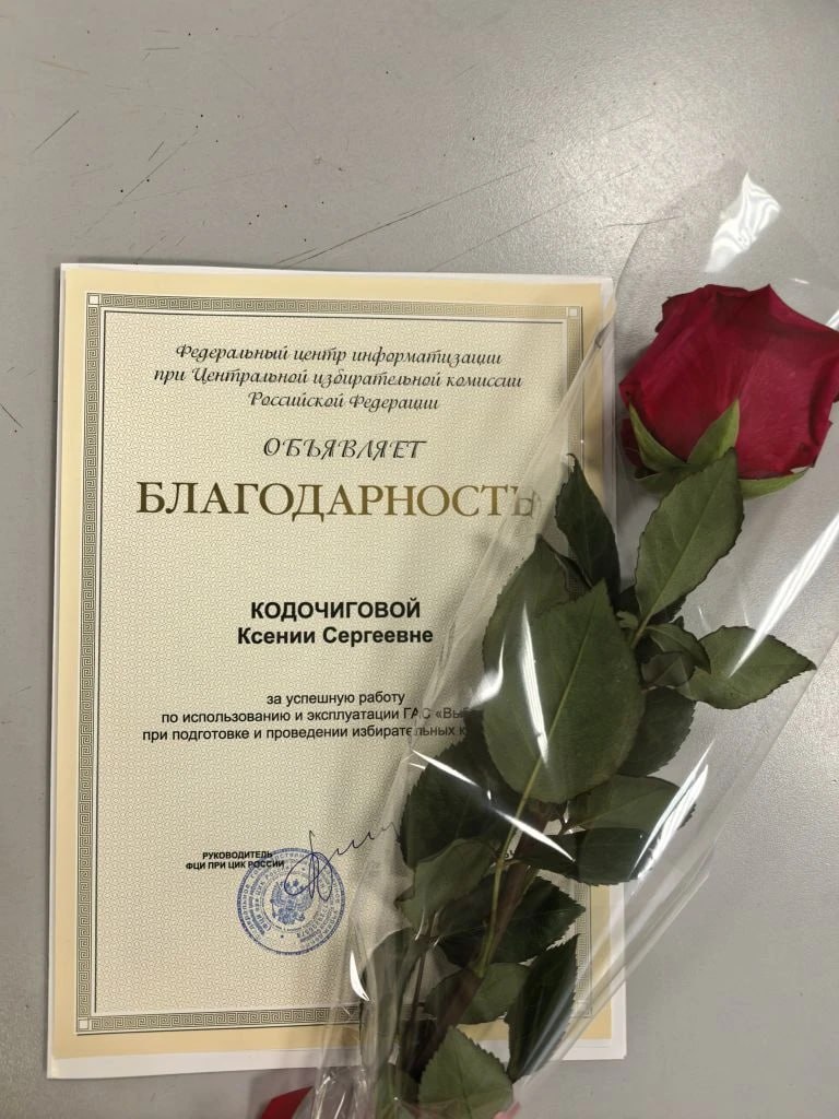 Это признание – закономерный итог грамотной и безупречной работы в Государственной автоматизированной системе «Выборы». Ксения Сергеевна обеспечивает бесперебойное функционирование комплекса, от которого напрямую зависит скорость обработки данных и надежность результатов выборов. Такая ответственность требует не только технических знаний, но и высокой самоотдачи, особенно в период избирательных кампаний.
