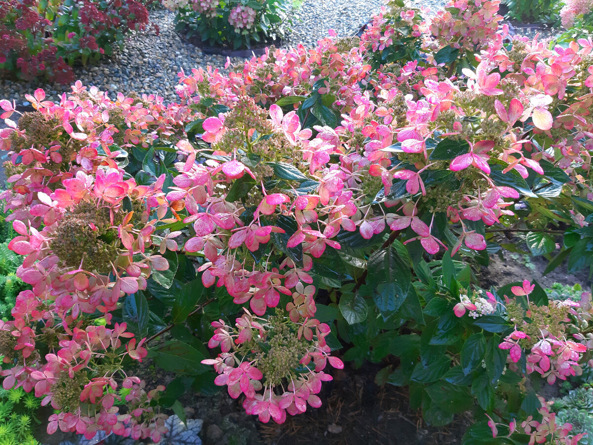 Цветы этой потрясающей гортензии на длинных стеблях изящно раскачиваются, словно крупные бабочки. Каждое соцветие становится ярким акцентом в общем пейзаже, привнося в него искрящийся эффект блеска, напоминающий миллионы бусинок.
