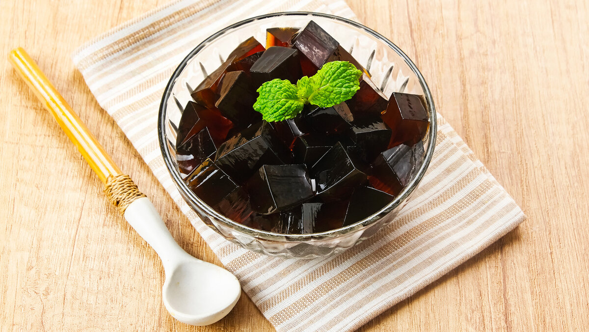 Восточные страны предлагают великолепный способ охладиться в зной — травяное желе. Это экзотическое лакомство изготавливают из ферментированных листьев китайской мизоны, растения, известного своим тропическим характером. Глубокий темный цвет желе почти черный, а его вкус в значительной степени reminiscent медицине, с легким оттенком йодистого аромата.
