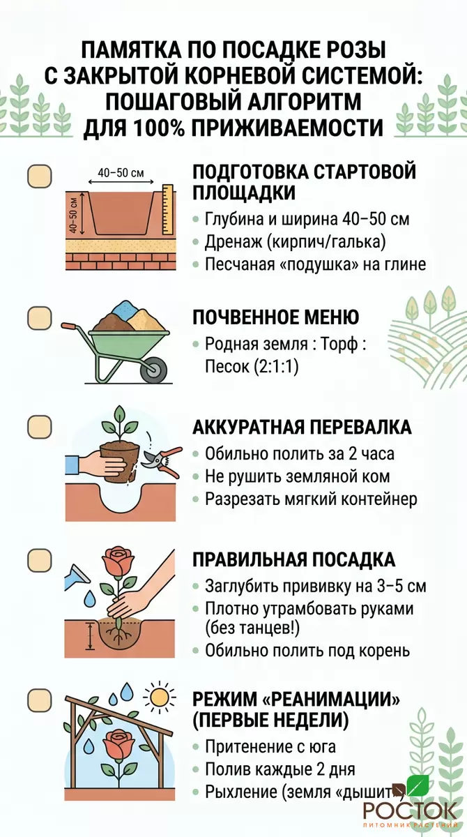Многие садоводы совершают распространенную ошибку, полагая, что купить розу с закрытой корневой системой означает беззаботно пересадить её в сад. На практике, этот подход может привести к печальным последствиям: возвращенным в питомник саженцам с немыми вопросами в глазах.