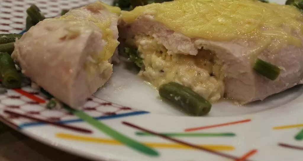 Приготовление этого блюда не займет много времени, если заранее подготовить ингредиенты. Куриные грудки легко отбиваются, а затем их можно наполнить начинкой, состоящей из творога, сыра и ароматных приправ. Чтобы отбить мясо, достаточно накрыть его пленкой и легко прокатать скалкой.