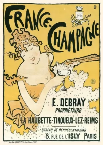 Вдохновение для создания постера было найдено в результате победы на конкурсе по дизайну рекламы шампанского в 1889 году. На первый взгляд, динамичная композиция с легкомысленной дамой, оборачивающейся через плечо, завораживает. С веером в одной руке и бокалом шампанского в другой, девушка словно соединяется с игривыми пузырьками. Эта игривая иллюстрация передаёт легкость и радость, подчеркивая атмосферу веселья, которую приносит шампанское.