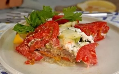 Это запечённое чудо сочетает вкус рыбы и свежесть овощей, а также сливочное послевкусие, создаваемое моцареллой и сметаной. Базилик и укроп наполняют блюдо ароматом, делая его настоящей находкой для легкого ужина.