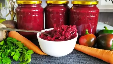 Салат из свеклы «Аленка» предназначен для ценителей заготовок на зиму, соединяющих в себе пользу овощей и насыщенные вкусовые сочетания. Это не просто элемент гарнира, а настоящая эстетика зимнего стола, обогащенная витаминами и микроэлементами.