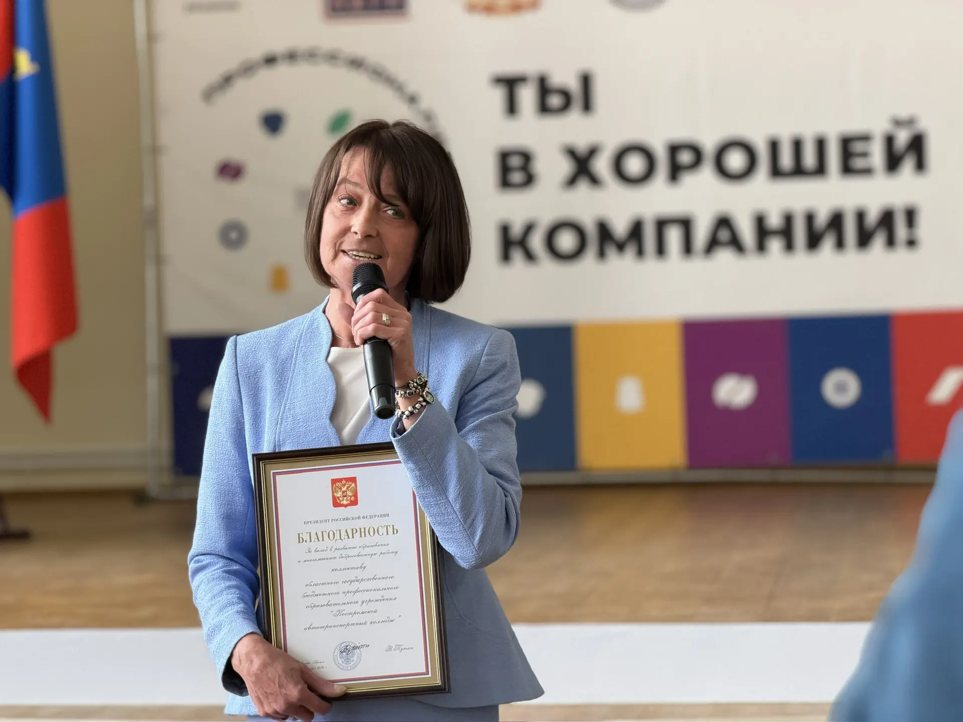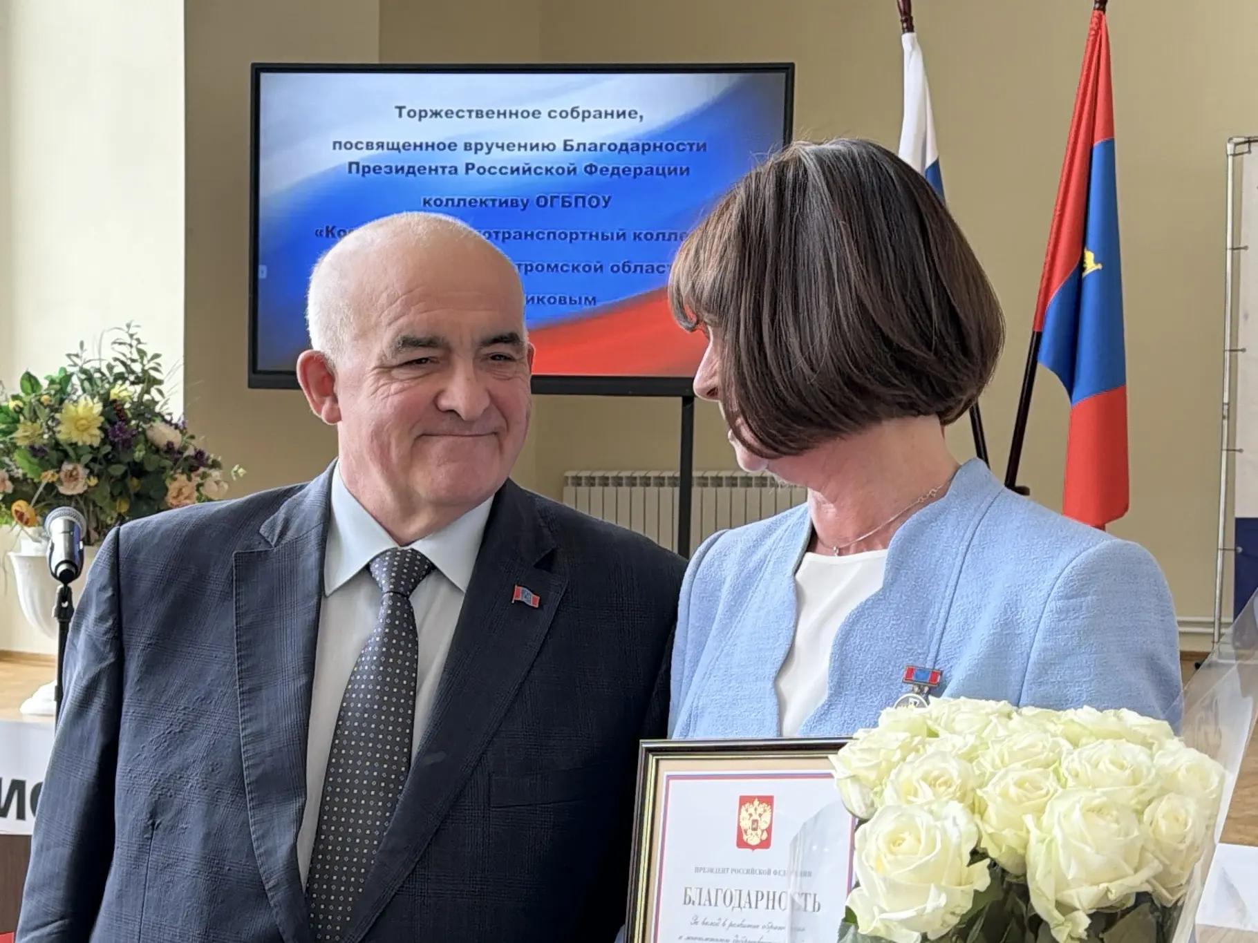 Сергей Ситников вручил коллективу Костромского автотранспортного колледжа Благодарность Президента России Владимира Путина. Учреждение отмечено за вклад в развитие образования и многолетнюю добросовестную работу.