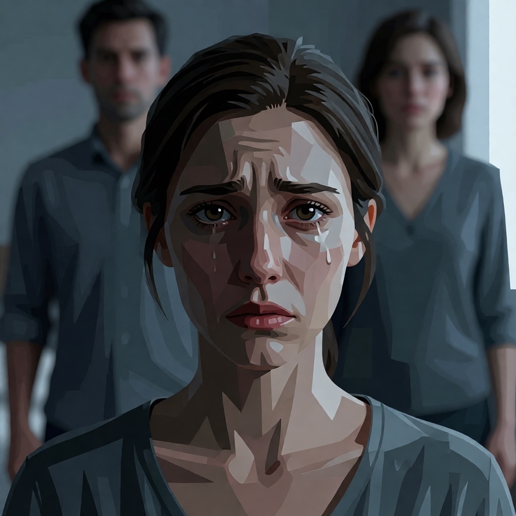 Лена сидела за столом, погруженная в собственные мысли. Ее взгляд не фокусировался на окружающем, она выглядела бледно и отстраненно.